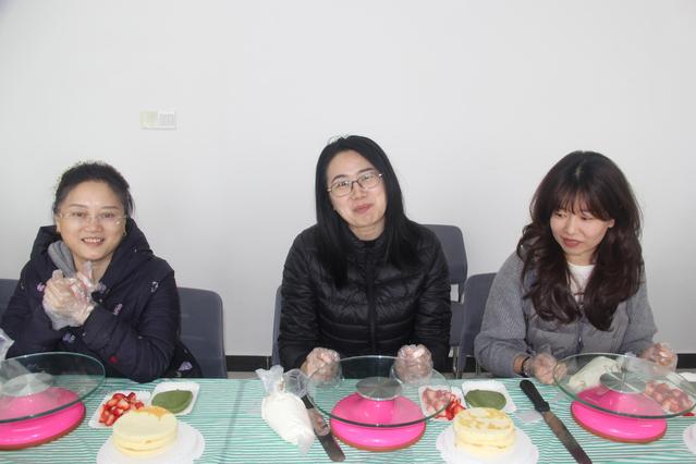活动伊始,董金玲院长向全体女同胞致以节日的问候与祝福,感谢大家在教学、科研与学生工作中付出的辛勤努力,鼓励大家在忙碌的工作学习之余,享受生活、绽放光彩。随后,专业烘焙师现场演示了蛋糕胚分层、奶油涂抹、水果装饰等基础步骤,从工具使用到细节技巧,耐心细致地为大家讲解示范。在轻松欢快的氛围中,老师们纷纷戴上手套、拿起裱花袋,化身“甜点师”。大家一边交流心得,一边发挥创意,精心搭配草莓、蓝莓等鲜果,现场欢声笑语不断,气球与色彩斑斓的蛋糕相互映衬,处处洋溢着温馨与喜悦。