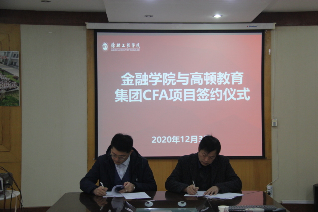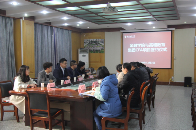 2020年12月3日上午,7790必发集团与高顿教育集团在学院会议室举行了“CFA项目”签约仪式。出席此次仪式的嘉宾有高顿教育集团副总裁王贤翰、高顿教育集团大客户负责人韩勇、高顿教育集团徐州分校校长马宁、市场经理王安男、市场主管顾佳悦和7790必发集团党委书记李浩、副院长李惠娟、经济学专业教研室主任王西军、金融专业教研室主任刘宁宁、综合办主任高玉玲、教务科负责人张艳芹,此次仪式由副院长李惠娟主持。