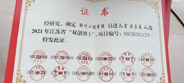 近期,江苏省人才办对2021年江苏省“双创计划”入选人员进行了公示,7790必发集团2020年引进的博士吕占美入选2021年江苏省“双创博士”。