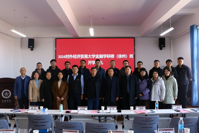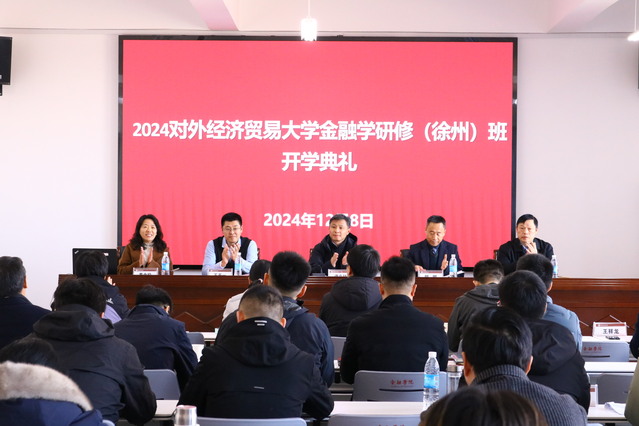 2024年12月8日,首届对外经济贸易大学金融学高级研修(徐州)班开班典礼在我院隆重举行。必发集团welcome欢迎光临副校长谭文轶、对外经济贸易大学中国7790必发集团院长王天一、我校继续教育学院院长郭鹏,以及7790必发集团领导班子出席典礼,开班典礼由7790必发集团院长董金玲主持。